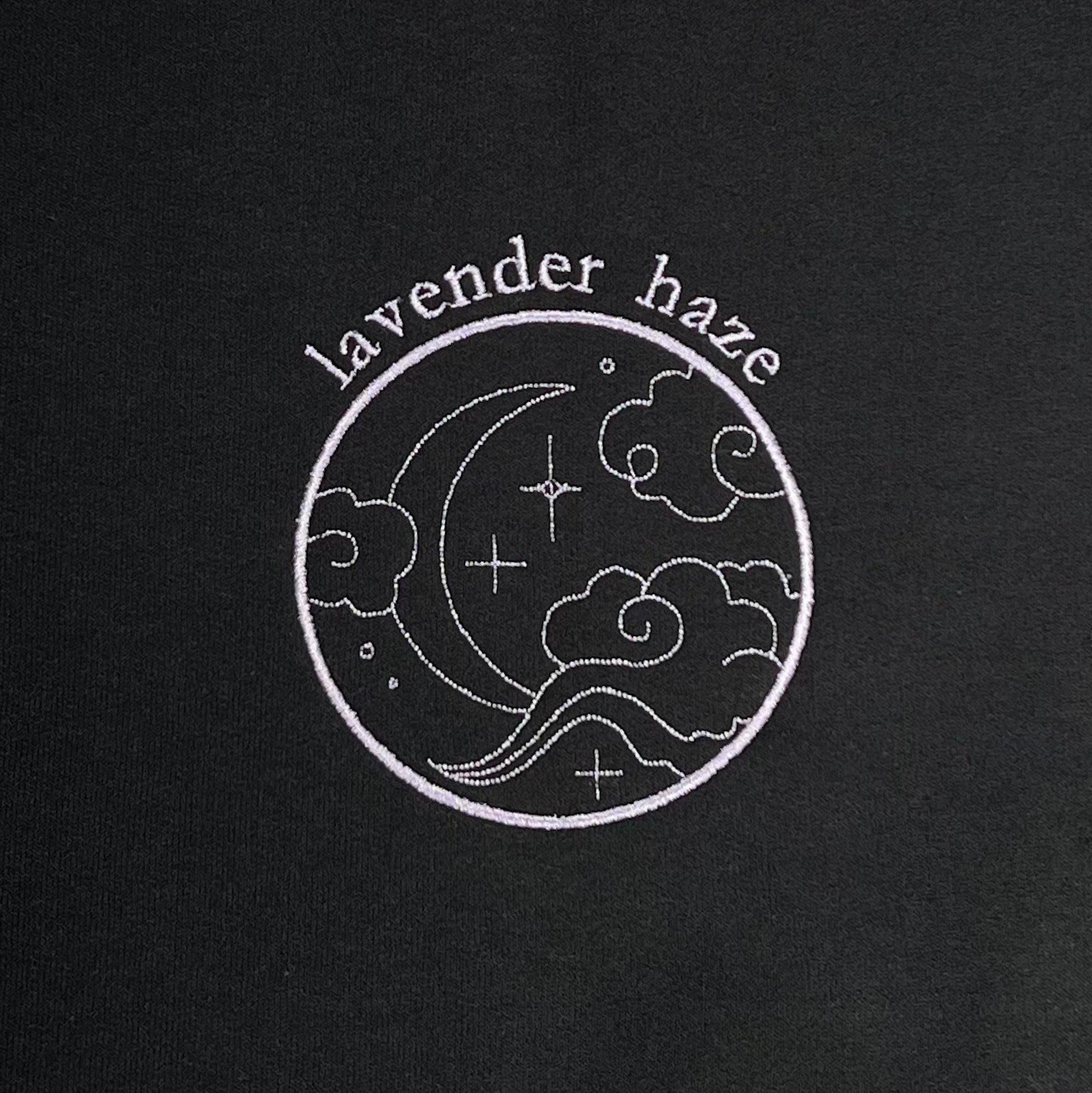 This Lavender Haze inspired design is embroidered using Lavender thread, onto a Black crewneck.